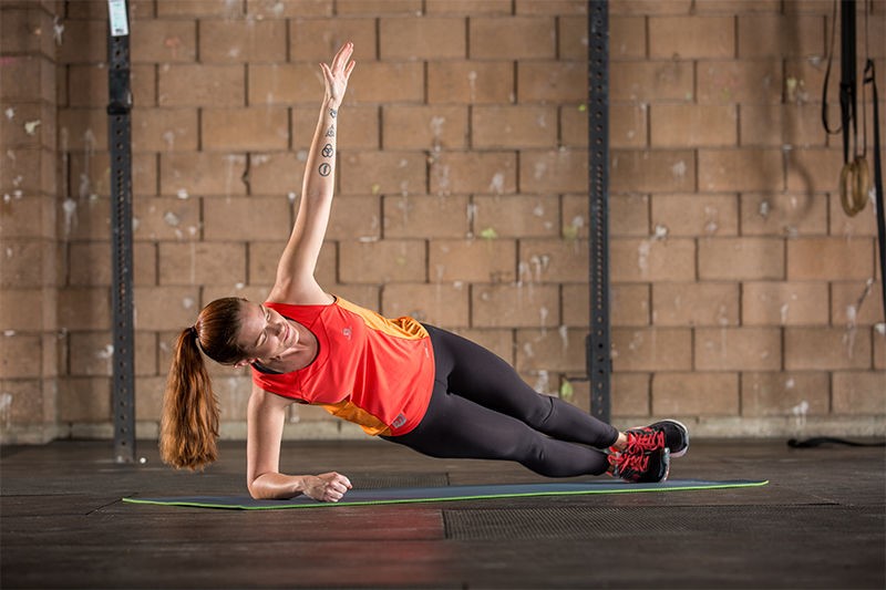 or find an elevated surface on which to place the elbow and forearm, reducing the challenge on the core.