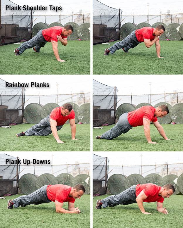 rest when needed. Form is critical with planks—it’s common to arch or curve the